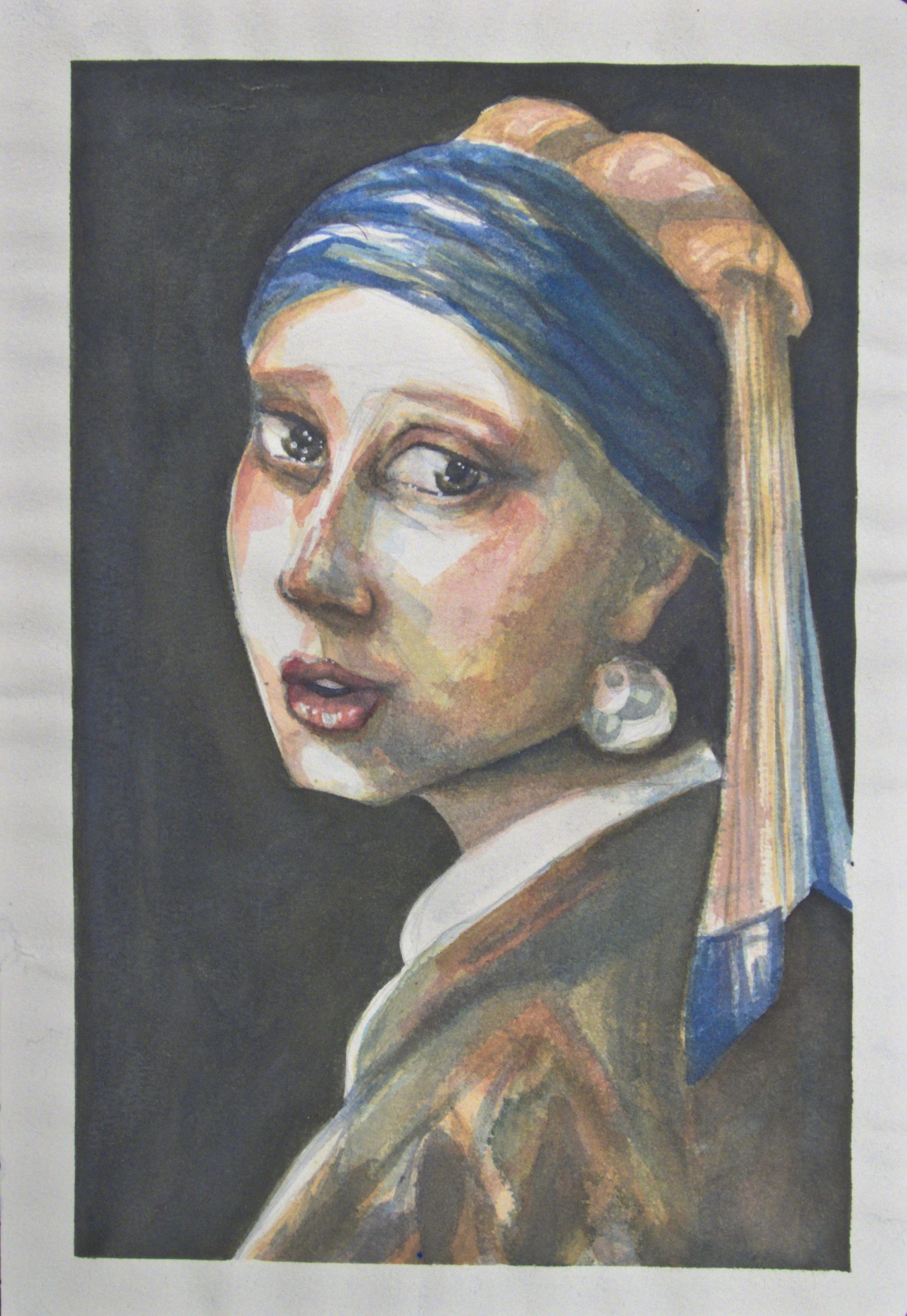 La artista, conocida por su versatilidad y sus múltiples talentos, se acerca a la obra de Vermeer con una perspectiva única. En su «La Joven de la Perla», la artista utiliza la acuarela para capturar la belleza de la joven y su mirada penetrante. Los colores, cuidadosamente elegidos, resaltan la sutileza de la expresión y la riqueza de la composición. Se puede apreciar la atención al detalle, la búsqueda de la armonía y el dominio técnico, elementos que caracterizan tanto su trabajo como diseñadora como su práctica artística. La obra, en su conjunto, es un testimonio de su sensibilidad y su capacidad para interpretar la historia del arte desde su propio lenguaje.